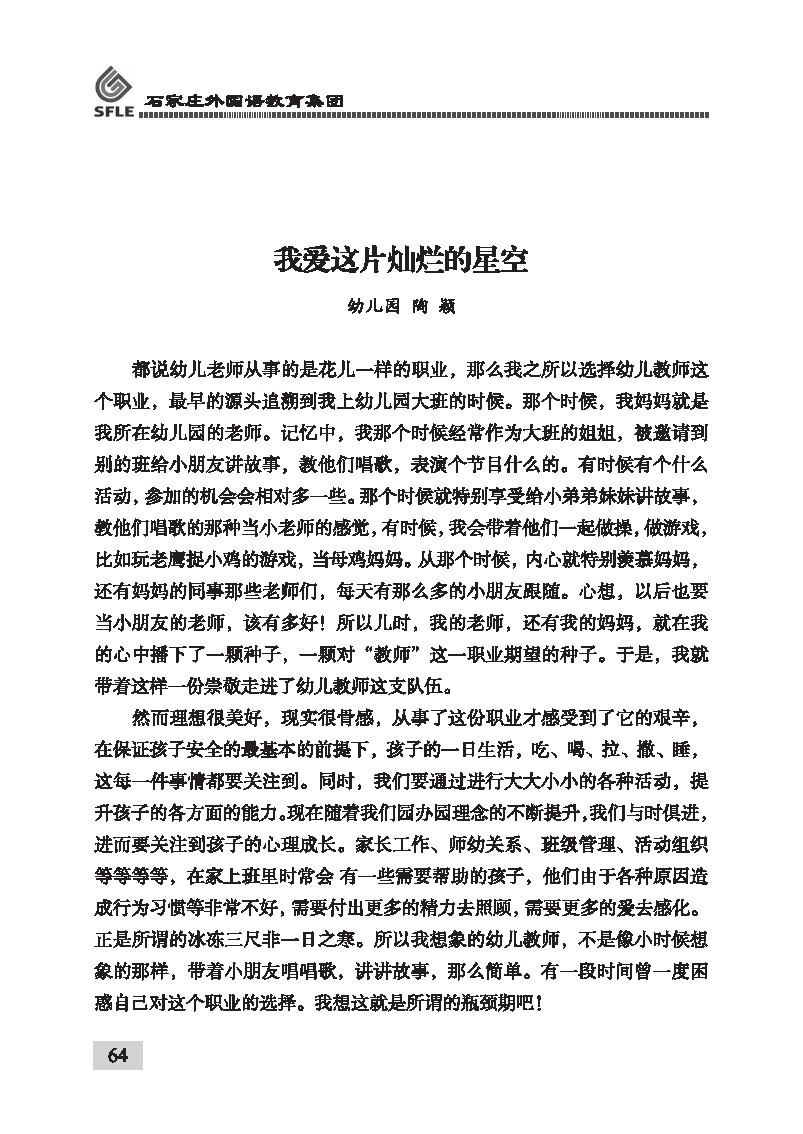 亲爱的石外:你好,我是周洁,一个土生土长的庄里人,认真踏实、勤勤恳恳的金牛座正能量好青年一枚。初次听到你的名字,我还在上四年级,听班上很聪明的男孩子说,他将来一定要参加选拔,去石外读书,再一年的秋天, ...