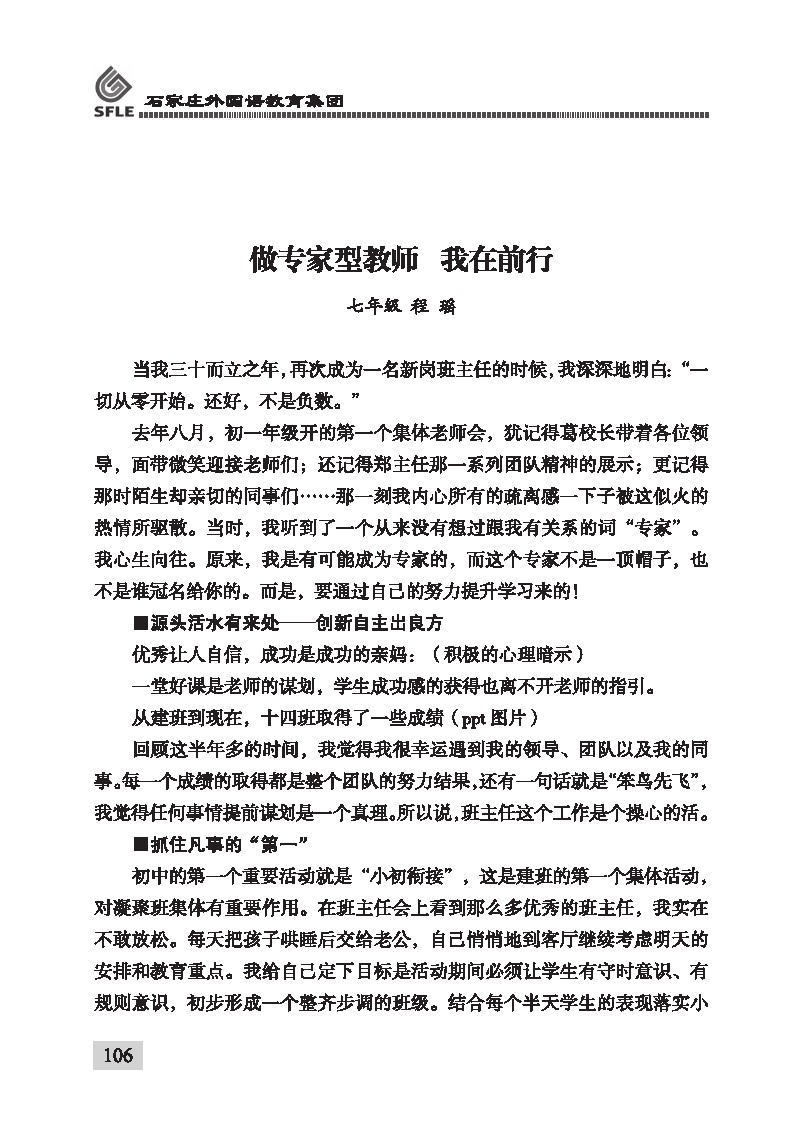 七年级许文英语教师我是来自七年级筑梦团队的教师许文2006年,我大学毕业,成为石外一名英语教师教师,是用生命感动生命,用灵魂塑造灵魂的职业。师爱,威严又宽容,琐碎却伟大。恰到好处又富有艺术。永远付出, ...