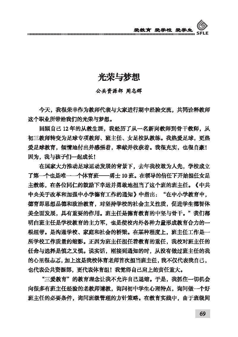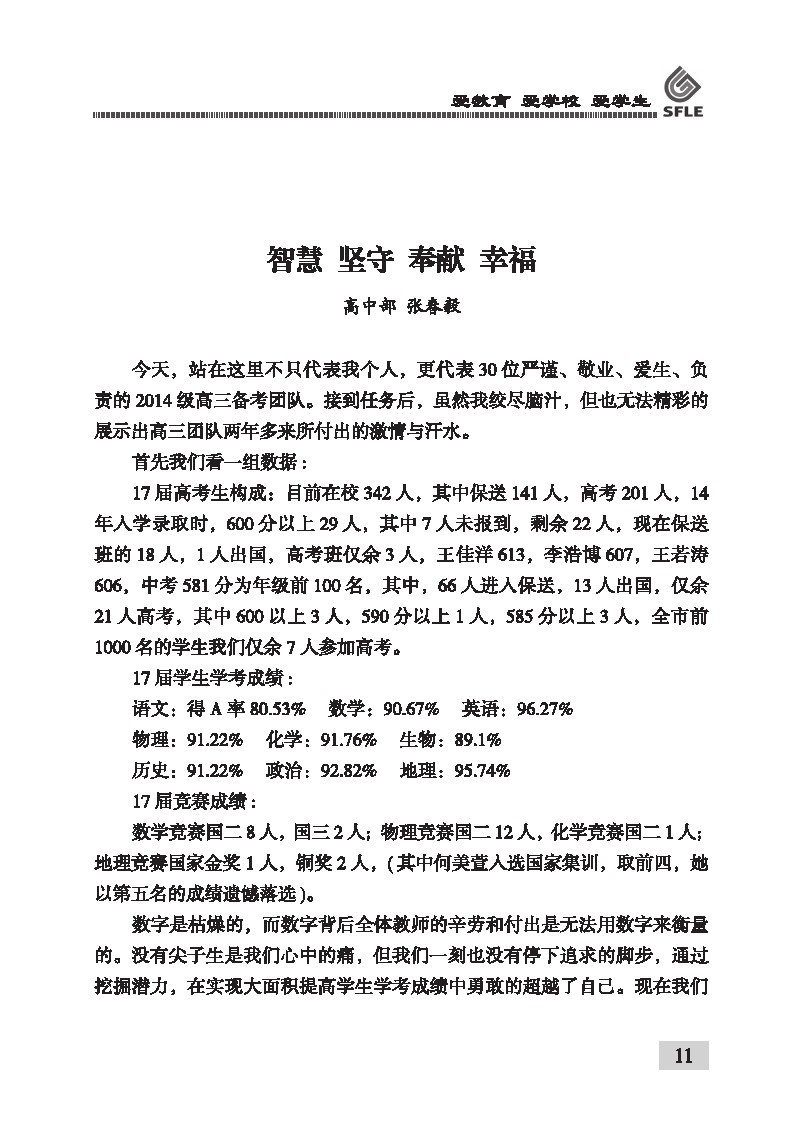 智慧 坚守 奉献 幸福 高中部 张春毅