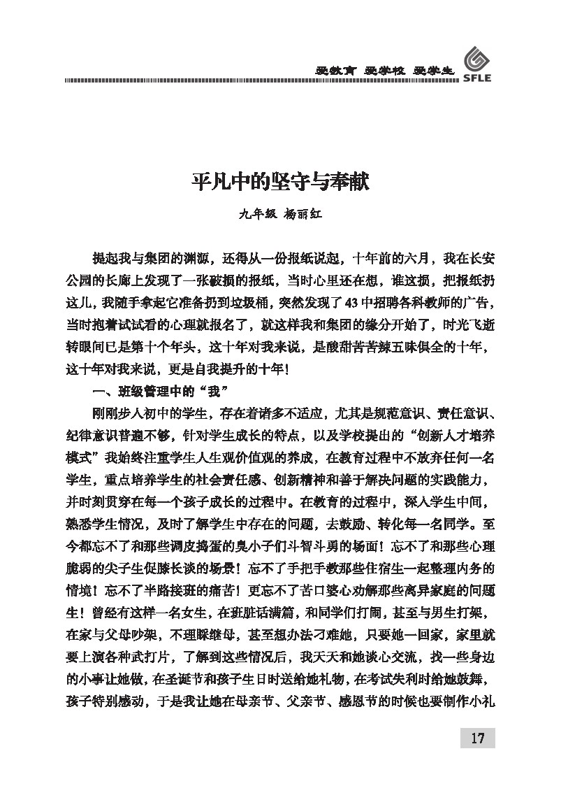 平凡中的坚守与奉献 九年级 杨丽红