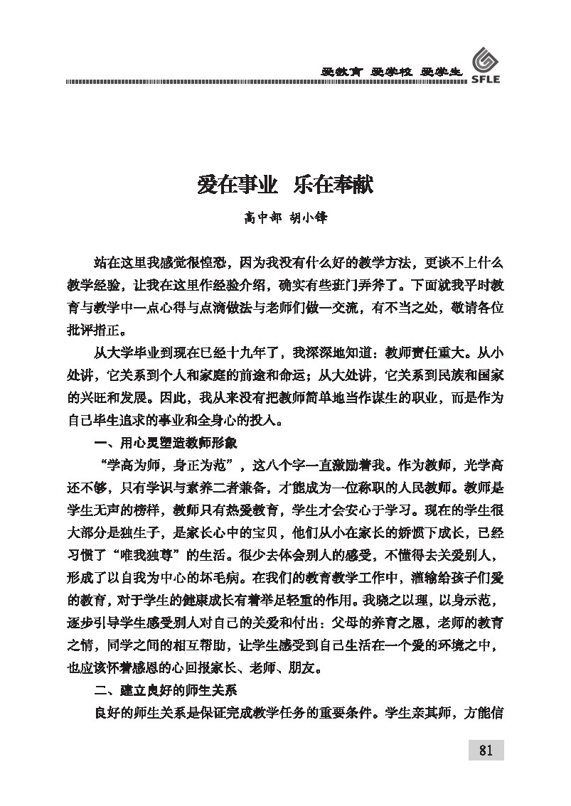 爱在事业,乐在奉献