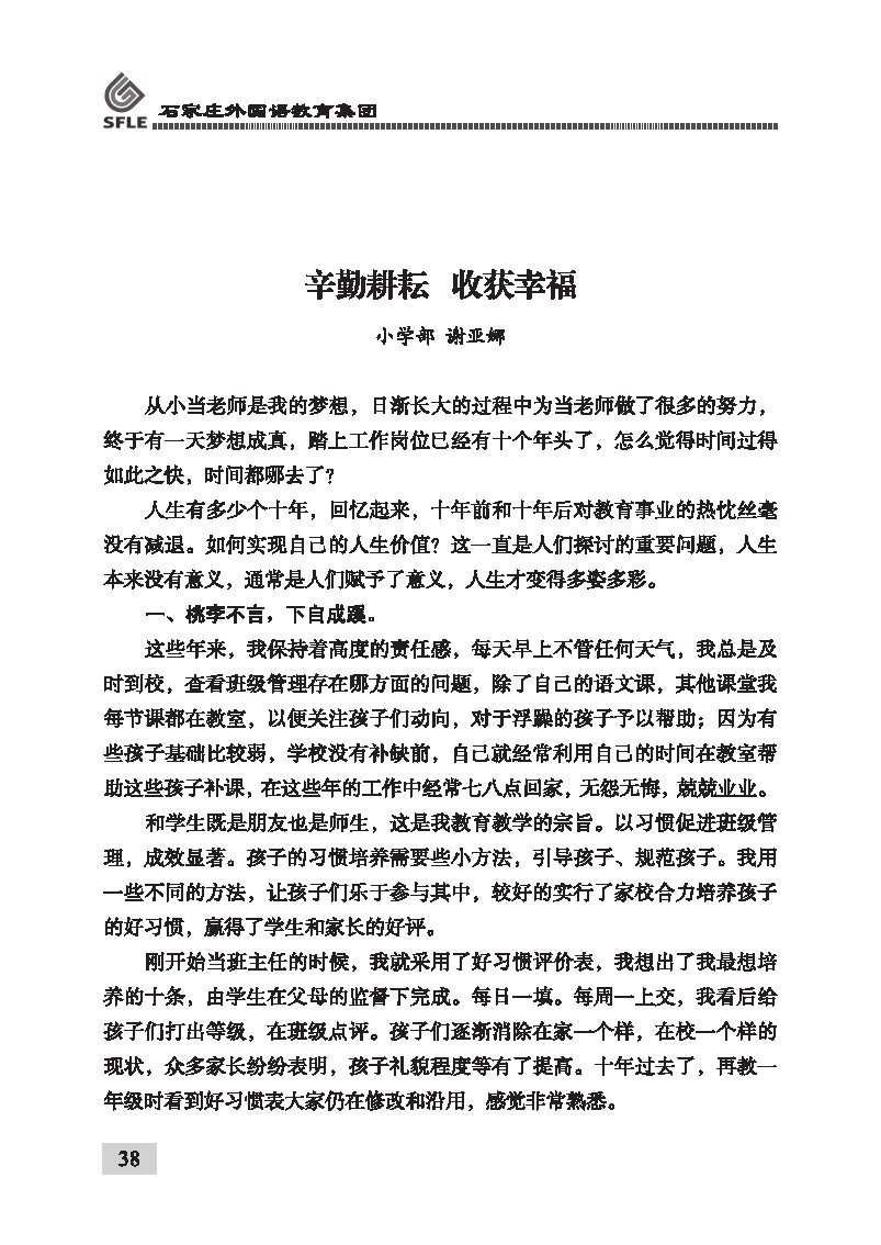 辛勤耕耘收货幸福 小学部 谢亚娜