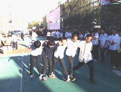 活动共分为:小组竞争协作绑腿跑、课本托球平衡竞赛、小组拔河比赛三个环节,取三项中排名前三的小组进行奖励。鼓励学生的减少抱怨,学会宽容,互相弥补不足才是成功的关键!