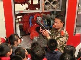 这次活动中消防队叔叔一共为孩子们讲解了4辆消防车的内部构造和装备,并让大家亲身体验了穿消防服和戴防毒面具的特别感受。学生们与消防员进行了最直接的面对面的交流,消防队员认真的给孩子们讲解了每一种消防工具的结构和作用。