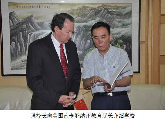 访问团一行由南卡罗纳州教育厅长MICK ZAIS带领。ZAIS先生毕业于美国西点军校,曾任将军。退伍后,在大学经历了十年校长的生涯。2011年通过竞选方式当上了南卡罗纳州教育厅长。目前他管理着1200所公立学校,51000教师和管理人员,706000学生,以及38亿美元的教育预算经费。