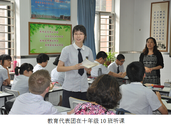 接着,代表团走进十年级10班的课堂,听完马采青老师的“四环节”英语课后,厅长先生表示:石家庄外国语教育集团的学生们真的很棒,他们甚至改变了我对于中国学生以前的看法。他们灵活、有思想、敢于表达、善于表达。而且从课堂上能看出来,孩子们对美国的了解远远大于同龄美国学生对中国的了解。Lexington Middle School 的校长Michael Sheley对马采青老师的“四环节”课堂给予了高度评价:这种课堂模式、授课的思路、老师的点拨与引导、尤其是学生的发散与主动、学生课堂参与的程度,都与现实教学中的美国课堂高度相似。从老师和学生的精彩表现中能看出,这种课堂在这里是深入师生的教与学的习惯之中的,老师和学生都深刻的理解这种授课模式的基本理论和课堂结构。