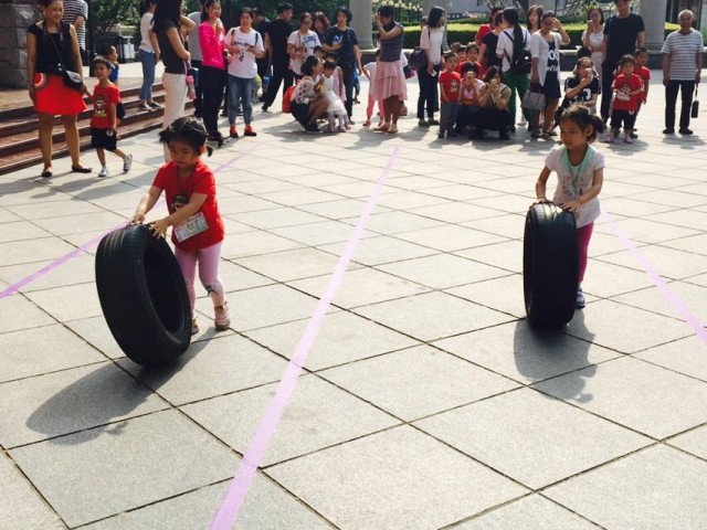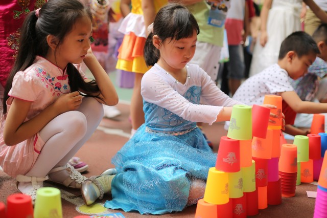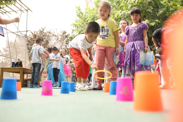 孩子们在游戏闯关——穿越时空、指压板、激情叠叠杯、幸运大套圈、穿越火线、一地鸡毛、三头六臂这些趣味十足的活动中充分感受节日的快乐。