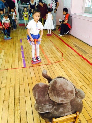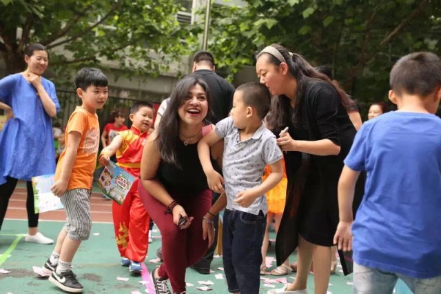 外教也被欢乐的气氛感染了,和小朋友们一起参加游戏活动!