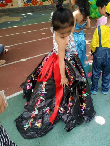 “HAPPY六一”环保走秀,服装可是大大的亮点哦~~~仔细看!我们孩子们漂亮的衣服到底是什么材料做的呢?