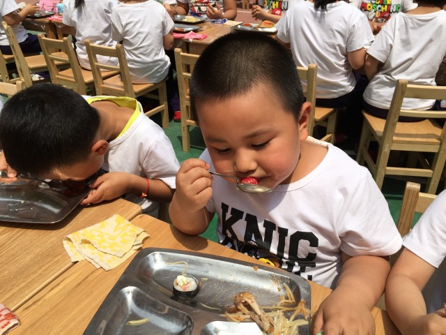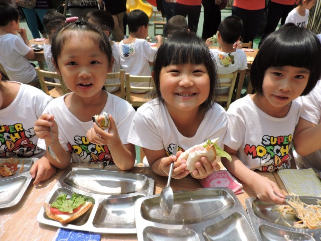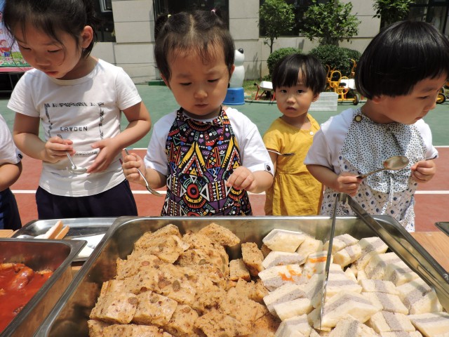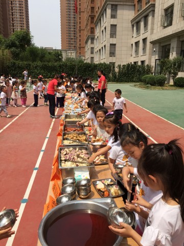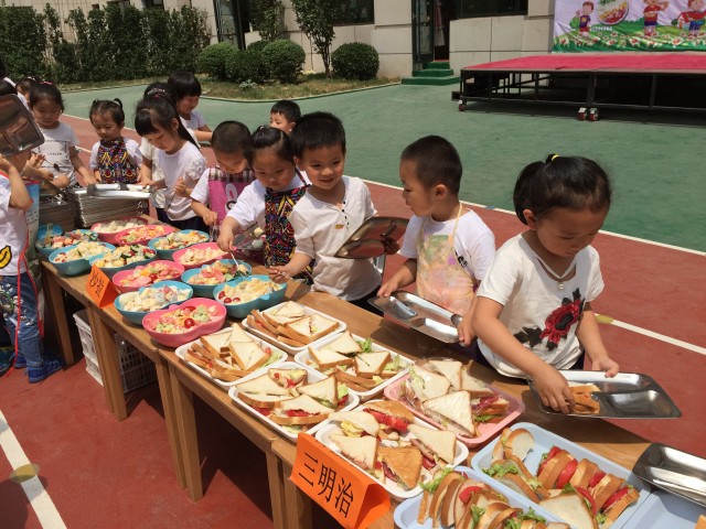 华堂分园举行“阳光美餐会”快乐六一活动。老师们把幼儿园大厅和小操场变成了温馨整齐的自助餐厅,孩子们自己的亲自动手制作、准备了丰富美味的食物。