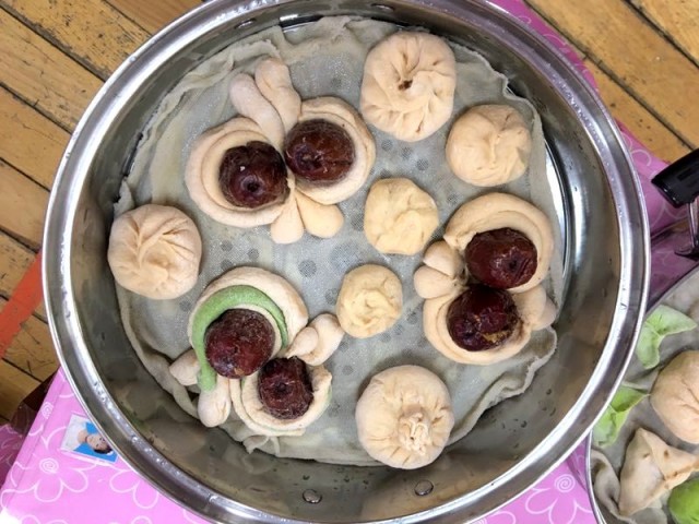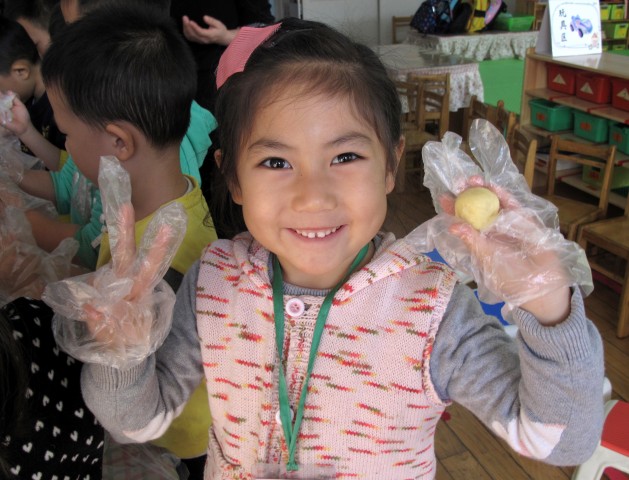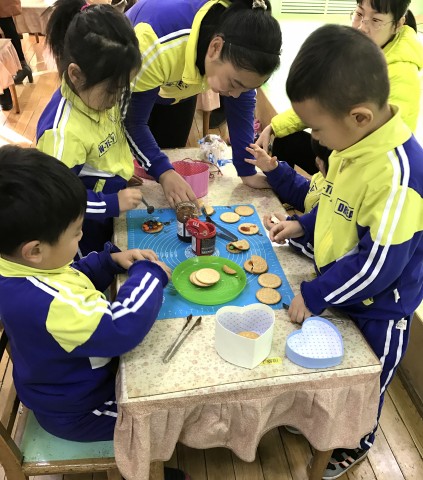 感恩节当天各班做了美食分享的活动,孩子们做了一个个形状各异的面点,把自己用心做的食物分享给伙伴和家人。