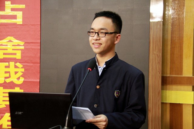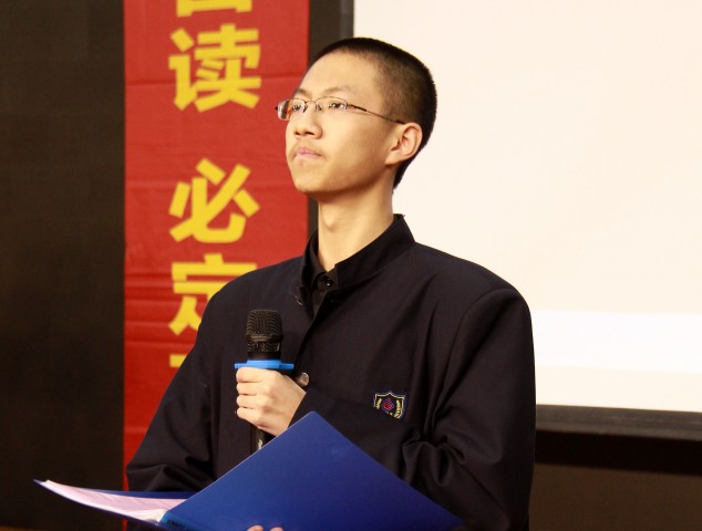 十二年级优秀学生代表王若涛勉励自己和同学们珍惜高考的最后一百天,高效学习,放手一搏,向高考的最高峰发起冲击。