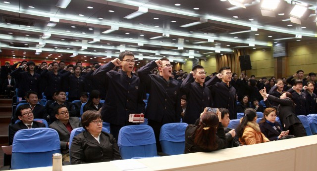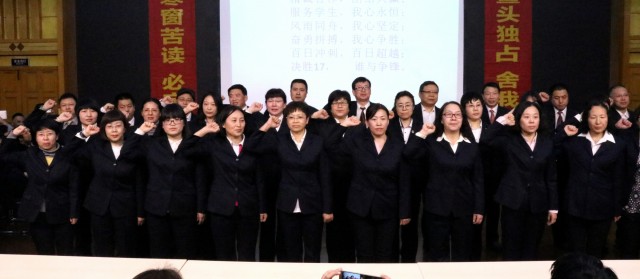 2017年2月27日,距离高考还有一百天时,石家庄外国语教育集团国际会议中心座无虚席,隆重召开了“责任、拼搏、圆梦”石家庄外国语学校2017届百日誓师暨成人节大会,全体十二年级学生家长、老师、学校领导共同见证了同学们的“成人礼”的激动喜悦和高考百日誓师的壮志雄心。
