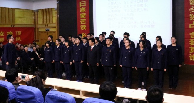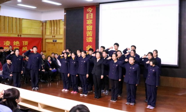 十二年级优秀学生代表王佳洋同学带领同学们进行“成人节”宣誓。