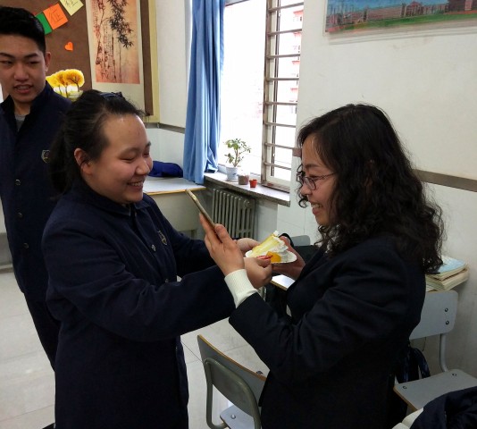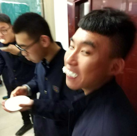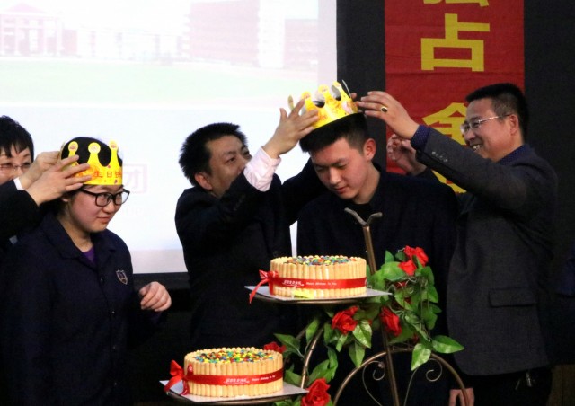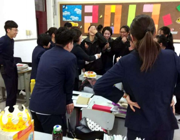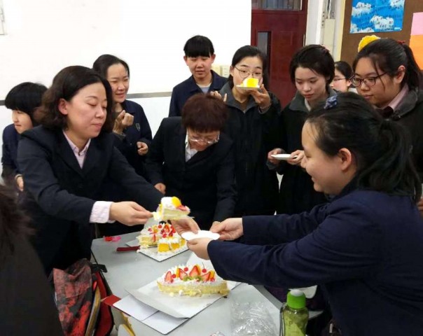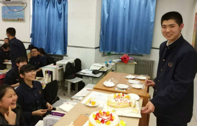 大家开心的分享着属于集体中每一个人的“生日”蛋糕,分享着高考前夕,在老师、同学陪伴下的苦中甜。
