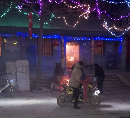 在我的老家邯郸有过节串庙拜神仙圣贤的习惯,除夕吃过晚饭,我随父母一起来到村里香火最旺盛的两个神仙圣贤老爷庙和关爷庙前拜奉并送上了香烛和烟花。