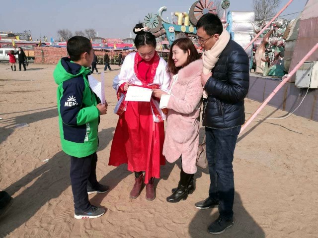 自古我国就有春节赶年会的习俗,图中就是今年春节正月初三我随妈妈来到赵王欢乐谷年会的现场,体验邯郸赵国时期的民俗风情并向参加年会的人们发放有关民俗文化的问卷进行调查。