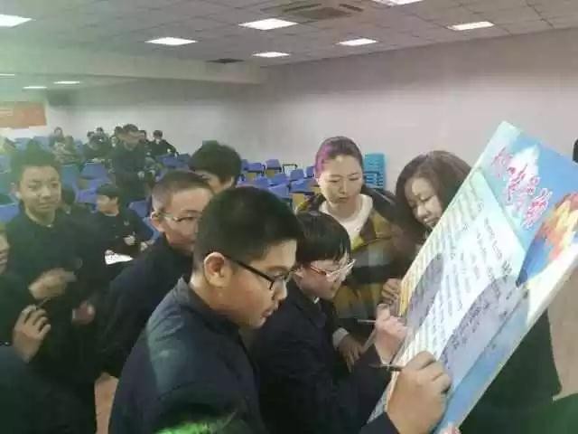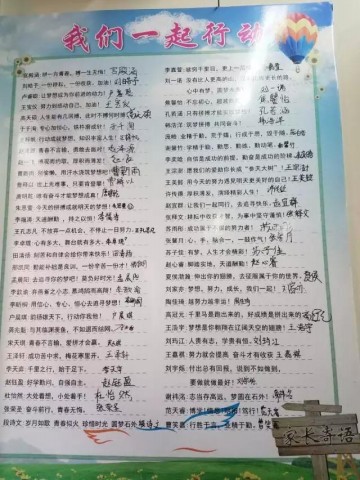 最后,家长们将暗中准备许久的礼物送上讲台,原来是一张写满了深情期望的“家长寄语牌”。同学们惊喜万分,纷纷上台签字“认领”家长写给你们的寄语。