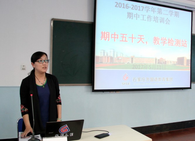 集团管理中心副主任康革平和初中部副主任魏茜针对山区学校对期中系列工作没有足够重视、缺乏整体构建和强力推动进行了主题为《期中五十天,教育加油站教学检测站》的培训。