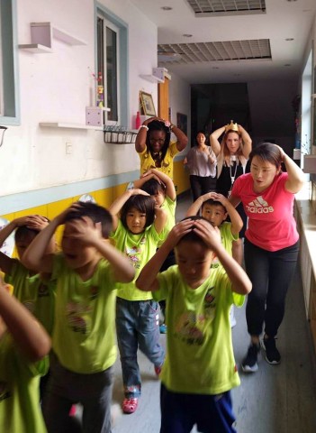 石家庄震感明显,很多人从睡梦中惊醒。今天一早,石家庄外国语教育集团幼儿园进行了防震逃生演练。