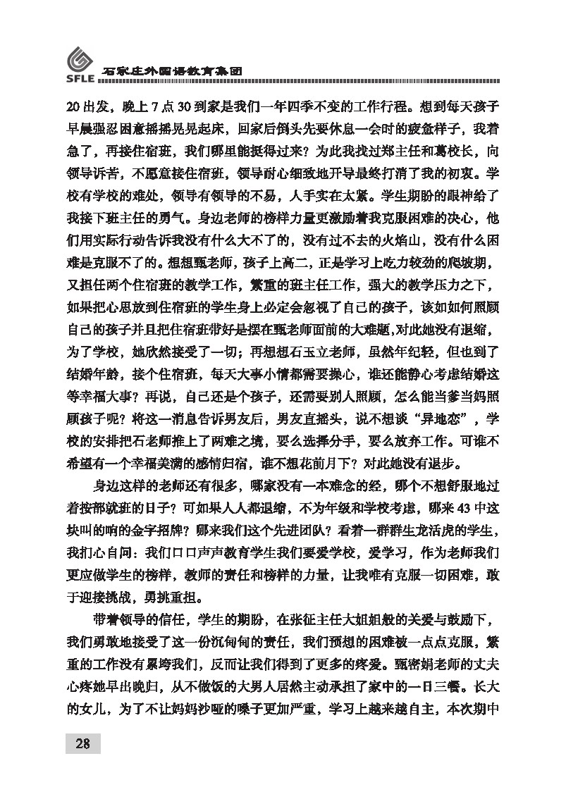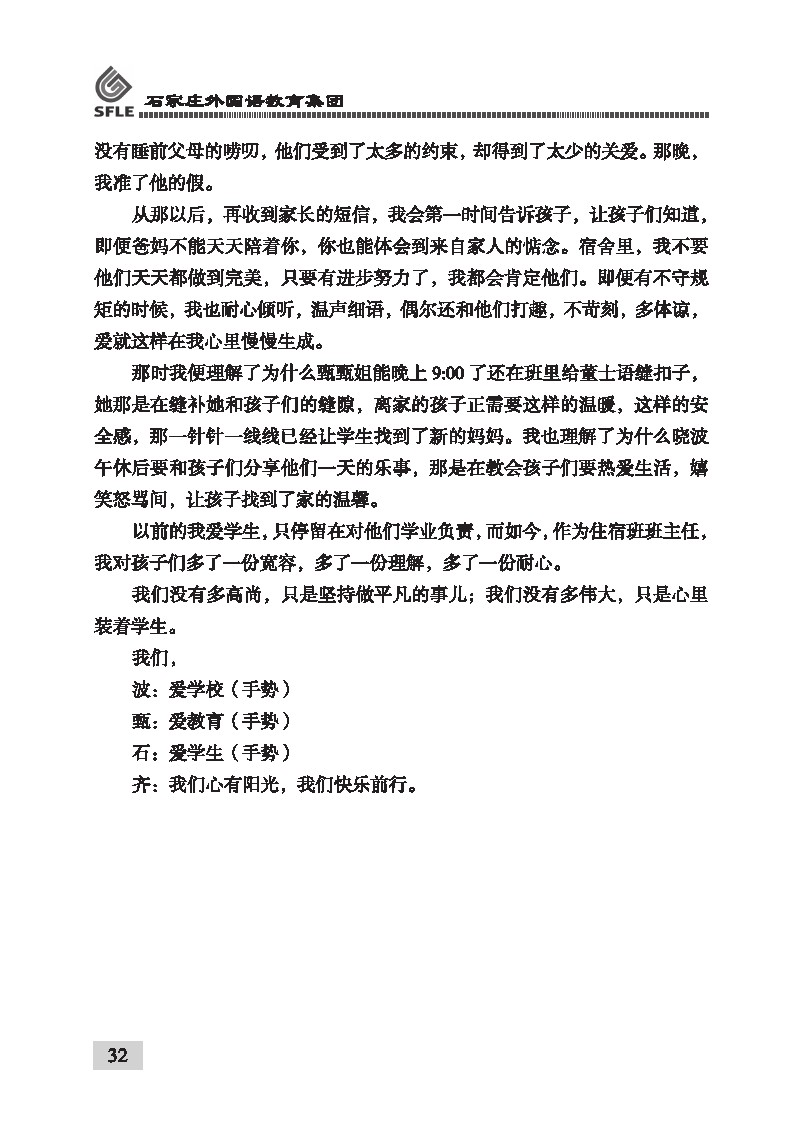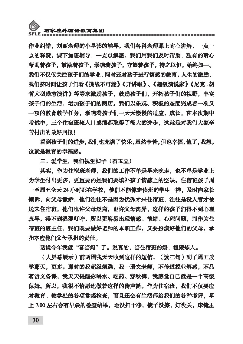 心有阳光 快乐前行 七年级住宿班班主任 王晓波/甄密娟/石玉立