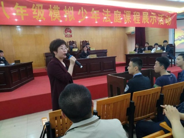 本次模拟法庭课程展示活动在集团和年级领导的大力支持下,在八年级超越团队政治组全体教师的指导和全体学生的积极参与下圆满结束。