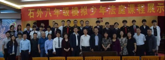 2018年5月20日周日下午3:00—5:00,石家庄外国语教育集团八年级在综合楼五层模拟少年法庭会议室举办了模拟少年法庭庭审观摩活动,八年级和七年级400多名学生和家长观摩了庭审活动过程,感受了法律的威严,上了一“堂”生动的法制教育课。