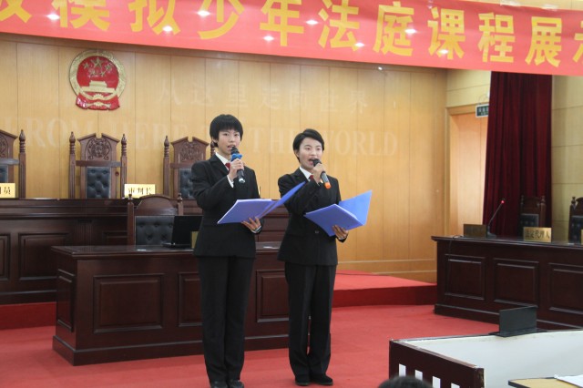 此次模拟法庭挑选了一起贴近学生生活的校园寻衅滋事案例作为庭审素材,涉及到校园欺凌等热点内容,全部过程是在教师的指导下由学生扮演法官、案件的当事人、其他诉讼参与人等,以司法审判中的法庭审判为参照,模拟审判某一案件的活动。