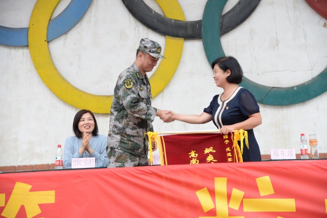 在表彰环节中,初中部副主任魏茜宣布了国防教育的表彰决定,对表现突出的班级进行了表彰。