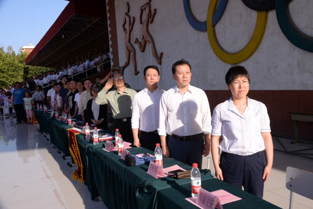 出席大会的嘉宾有河北省关心下一代工作委员会段荣会爷爷、陈教官、石家庄外国语学校党总支书记李红霞、石外集团副校长任克茵、初中部主任刘峰、副主任杨丽红、集团家委代表周德胜先生、年级主任宋丽佳、寇冠峤、以及各学科教学主任及教研组长。九年级1600余名同学的家长们也落座看台,和师生一起感受训练的成果。