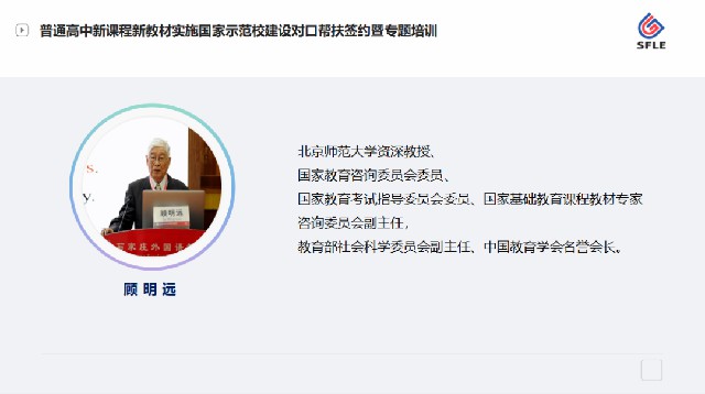 在培训会上,国家教育咨询委员会委员、国家基础教育课程教材专家咨询委员会副主任,中国教育学会名誉会长、北京师范大学资深教授顾明远先生就当今教育面临的多重挑战对高中教育提出了三点发展建议。