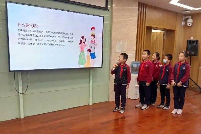 本次组织邀请四(6)中队的上善小队带来了精彩的文明主题队课展示环节,不学礼,无以立,作为博·雅文明少年,同学们要爱校园、爱班级、爱家庭,与文明齐步走。