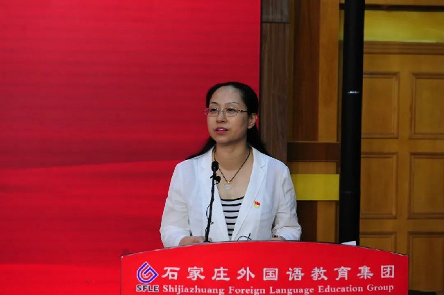 石外集团党委副书记、石家庄外国语学校党总支副书记李红霞领誓。