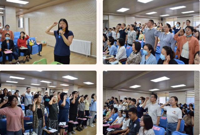 师徒共同宣誓,将携手传高尚师德和精湛技能,倾所有经验为团队发展,做有理想信念、有道德情操、有扎实学识、有仁爱之心的好教师!