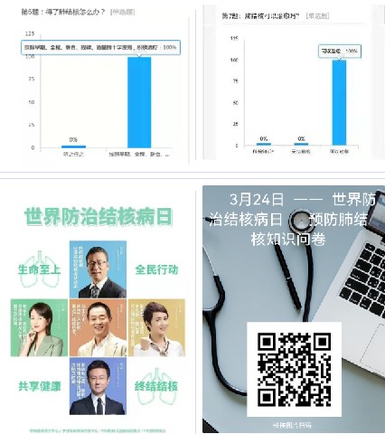 老师们积极加入线上结核病知识问答小程序平台,通过图片知识学习后,认真进行答题,从肺结核的传播途径、主要症状、治疗原则、预防措施等方面,提升了结核病防治知识知晓率。